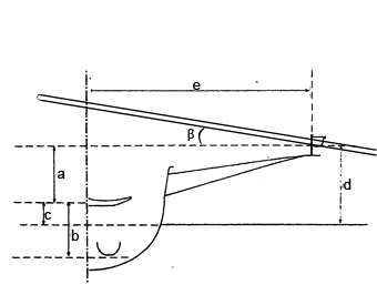 - e – span / spread – distance between longitudinal ax of boat to pin or the distance between pin’s